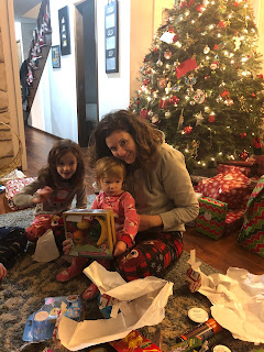Let me backup a little first though. The Christmas celebrations started on Christmas Eve with the Lundberg family party at Emily and Tala's house. We had a seriously delicious Mexican food dinner followed by a the cousin gift exchange. Elsie got a Cabbage Patch doll that is dressed up as a chipmunk, which she thought was scary. Carrigan got an L.O.L. pet, which she loved. Merrick got a bounce back ball and some trick gum that shocks you, which he thought was the coolest thing ever. The evening was just getting started at that point. We had a kids Saran ball, an adult Saran ball, and an adult White Elephant gift exchange. It was a really fun night. We went home exhausted and ready to get to bed so Santa could come.